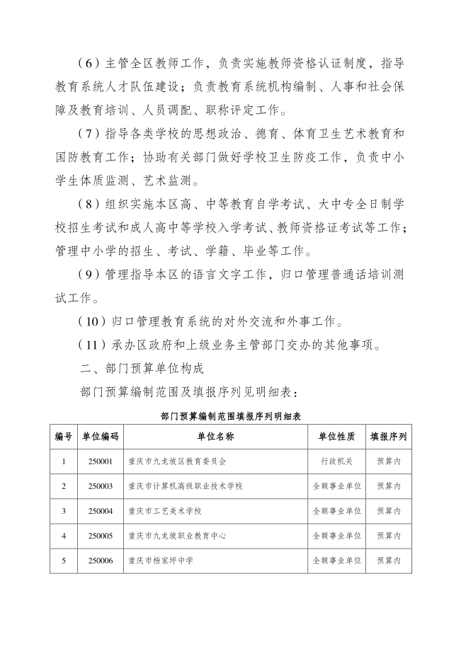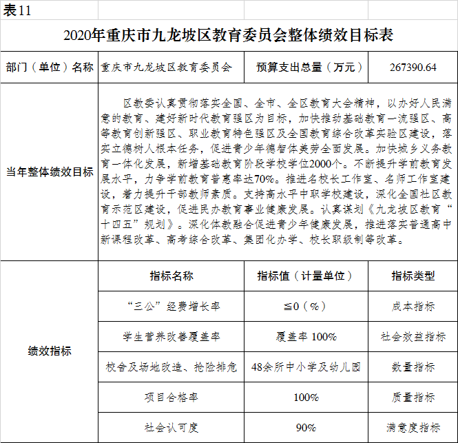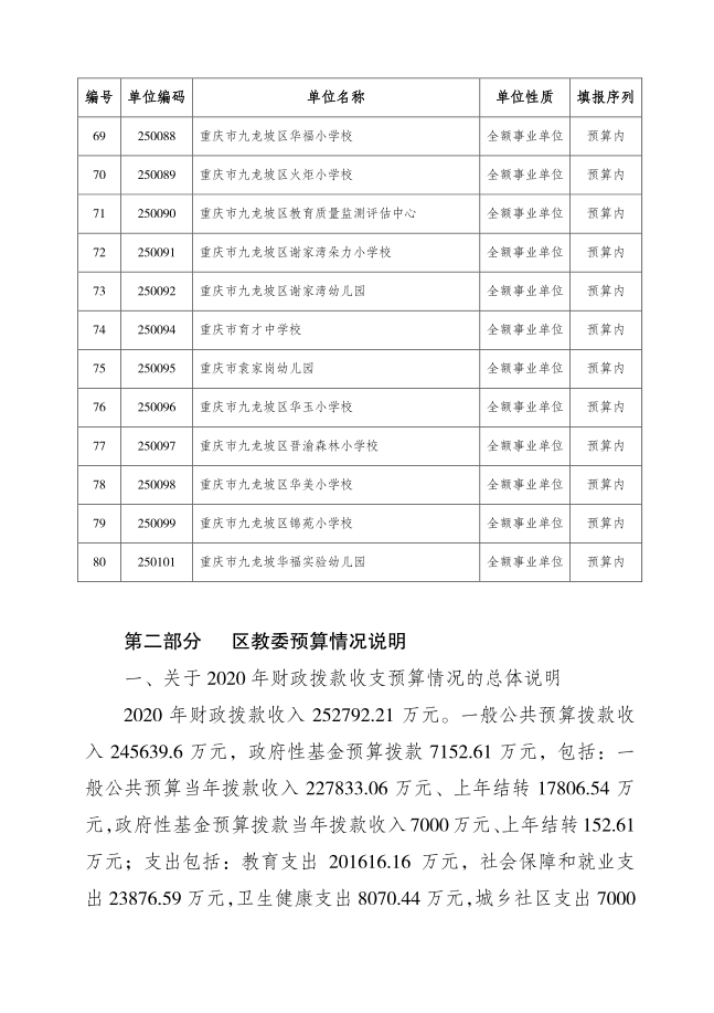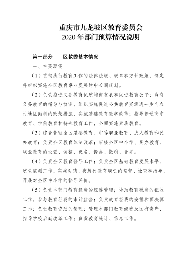 重庆市九龙坡区教育委员会2020年部门预算情况说明