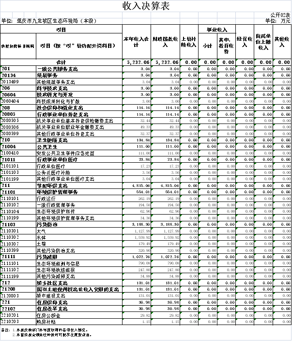 2.收入决算表