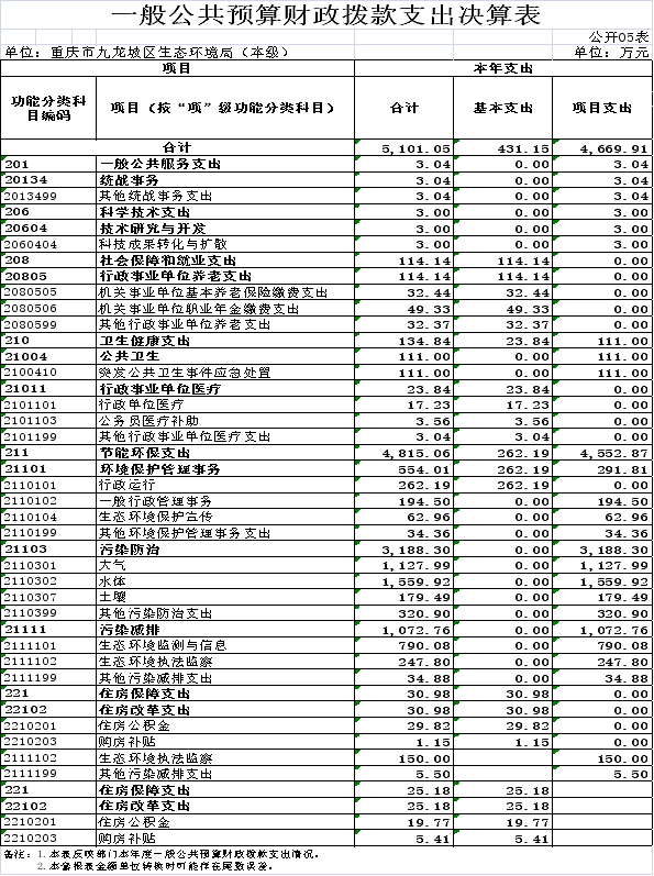 重庆市九龙坡区生态环境局(本级)2024年度决算情况说明