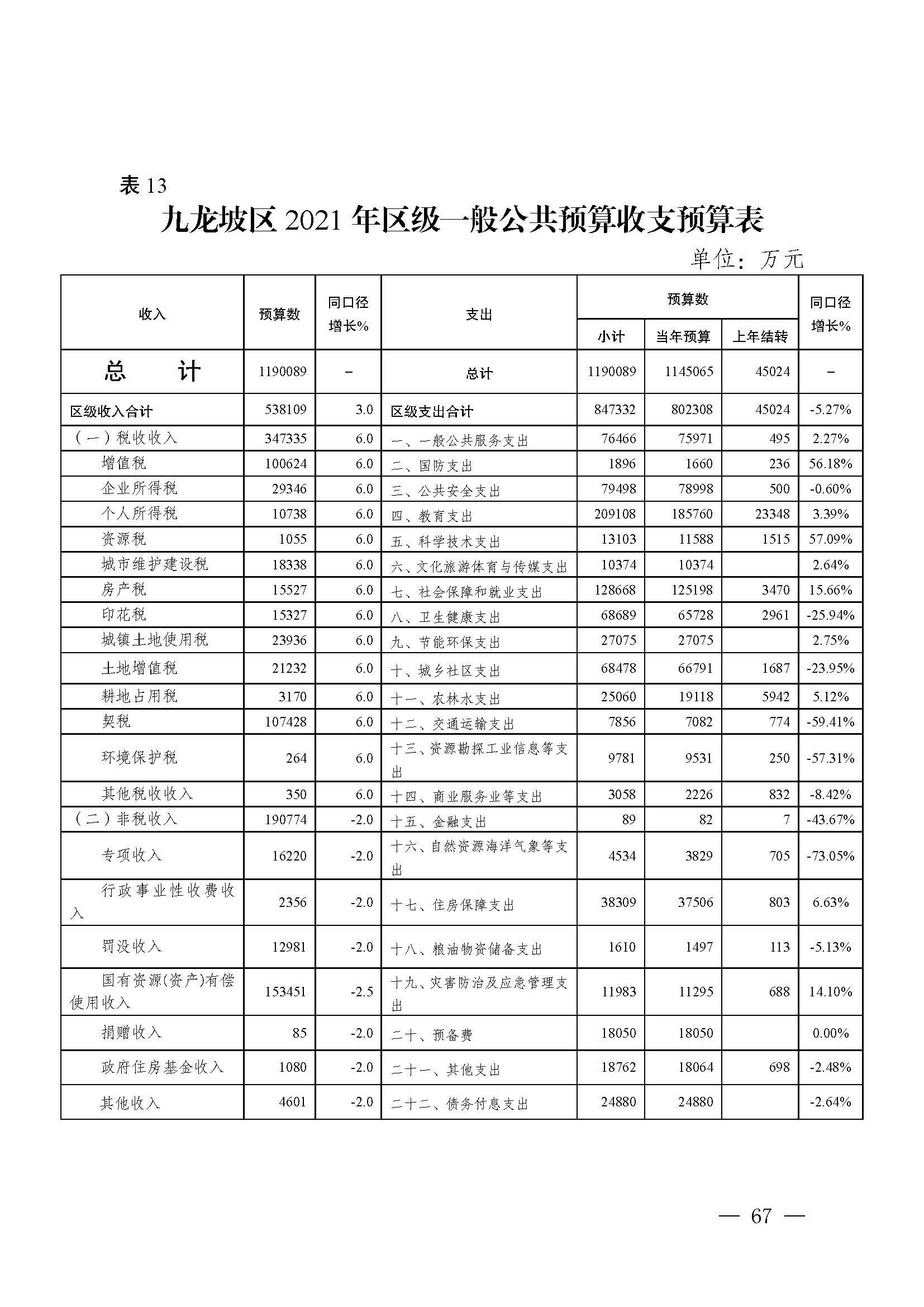 重庆市九龙坡区2020年财政预算执行情况和2021年财政预算草案的报告