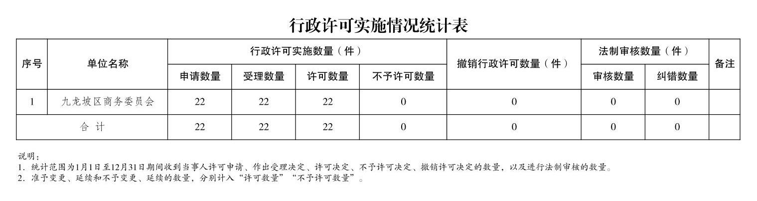 重庆市九龙坡区商务委员会2025年度行政执法数据统计表