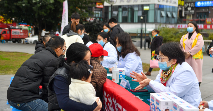 上午的临床实务环节选址九龙坡区九龙街道盘龙中央广场,直面社区群众与基层医务工作者需求。来自重庆市妇幼保健院、陆军特色医学中心、重庆医科大学附属儿童医院、重庆市九龙坡区妇幼保健院的专家团队聚焦婴幼儿喂养、疾病预防、回应性照护及早期发展等健康宣教主题,为现场居民与基层医务人员进行了实用的科普讲解与门诊服务指导,将专业育儿知识送到社区居民身边。