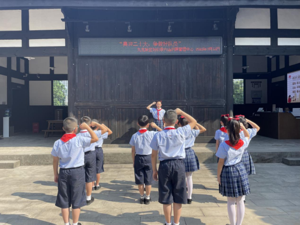 ▲高新区实验小学学生在刘伯承六店旧居开展“喜迎二十大,争做好队员”活动