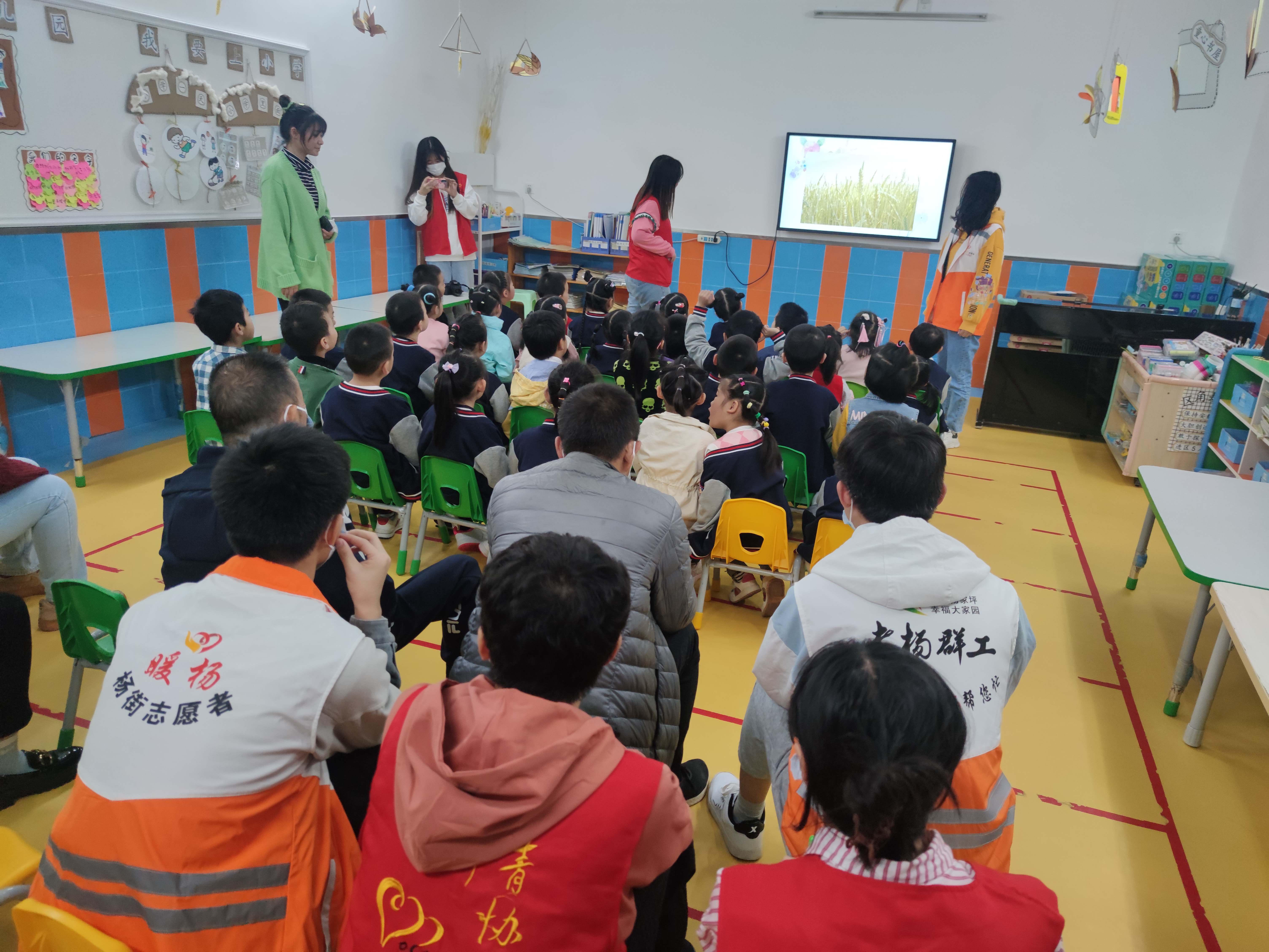 活动中,志愿者首先以PPT形式为小朋友们介绍了农业科学家一些农作物,随后普及了贫苦地区的粮食现状并观看了公益视频,呼吁小朋友珍惜粮食,一起落实 “光盘行动”,结合光盘行动志愿者向小朋友们详细讲解了垃圾的去向,让孩子们知道垃圾生产过多的坏处,了解垃圾的多种处理方法以及垃圾分类为我们生活带来的便利。重点介绍并教会孩子们认识可回收物、厨余垃圾、有害垃圾、其他垃圾的图标,通过颜色来区分各种垃圾桶,活动现场孩子们参与活动的氛围十分活跃,都纷纷举手回答问题,通过互动环节更加加深了孩子们对垃圾分类的认识。同时,志愿者们还为孩子们分发垃圾分类宣传手册,让孩子们带给家长共同学习垃圾分类小知识,用自己的环保行动带动家长树立垃圾分类的理念,达到了“教育一个孩子、影响一个家庭、带动一个社区、推动整个社会”的目的。