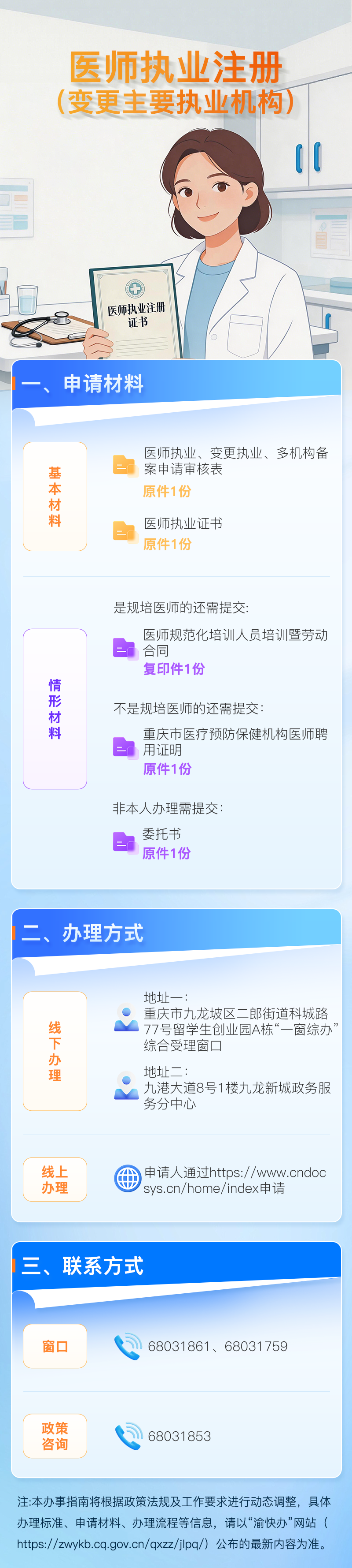 【办事指南】九妹教您办医师执业注册(变更主要执业机构),咱们办事“图”个明白!