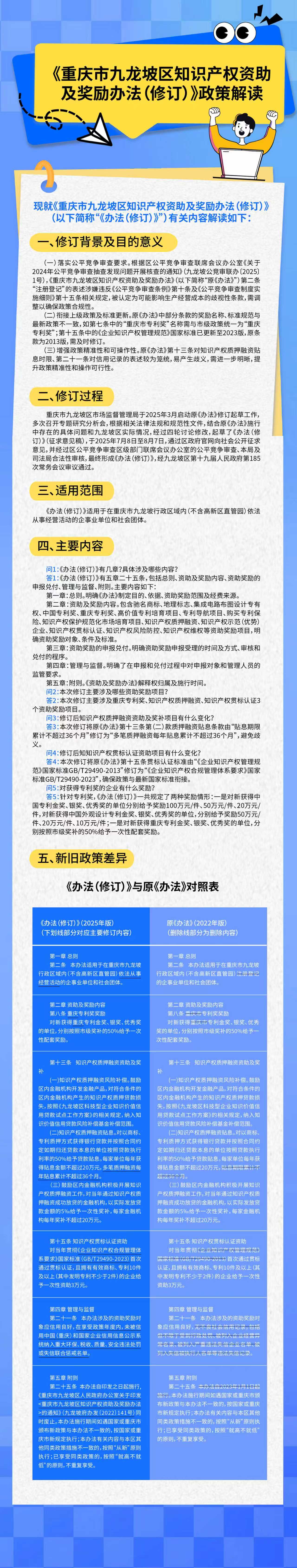 《重庆市九龙坡区知识产权资助及奖励办法(修订)》政策解读 【一图读懂】重庆市九龙坡区知识产权资助及奖励办法(修订)