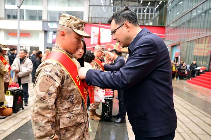 九龙坡区2026年上半年入伍新兵欢送仪式暨为立功受奖军人家庭送喜报活动举行 覃昌德致辞 曾荣出席
