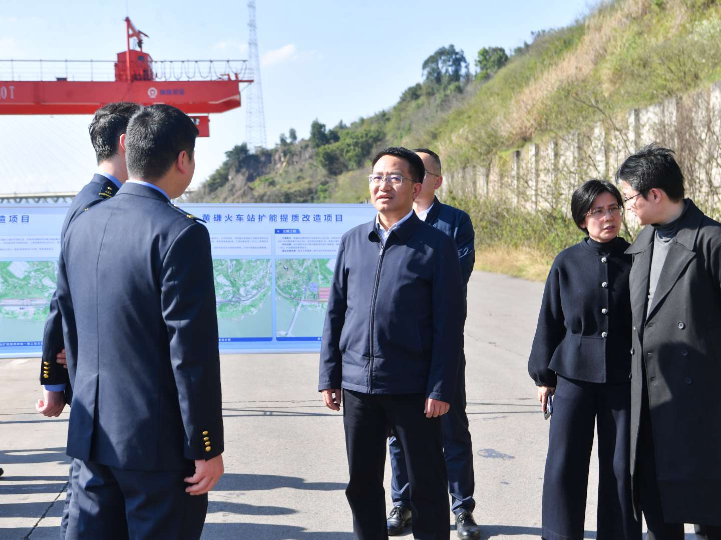 在黄磏火车站扩能提质改造项目现场,曾荣详细了解项目一期工程建设规划及远期发展布局。他强调,要立足“铁公水”多式联运发展需求,加大对上争取力度,加快推进一期工程建设,着力完善物流配套功能,助推现代化集疏运体系建设。