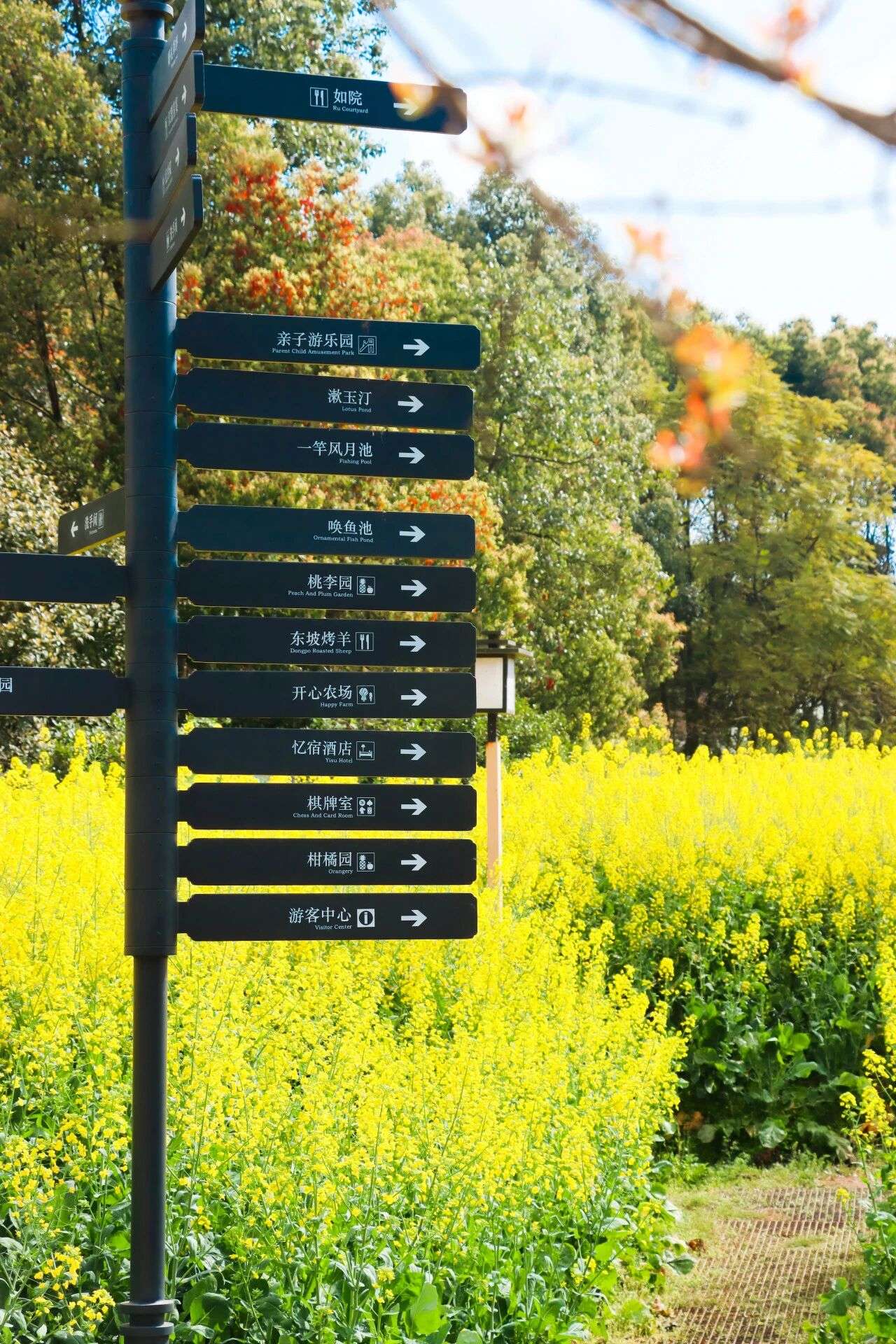 除了四季更迭的自然景致,景区的每一处设计都融入了原乡元素,木质的标识牌与自然风貌浑然一体,复古的民宿小院隐于林间,休闲驿站点缀着乡村民俗装饰,行走其间,都市的喧嚣被悄然隔绝,唯有乡野的清新与静谧萦绕身旁。