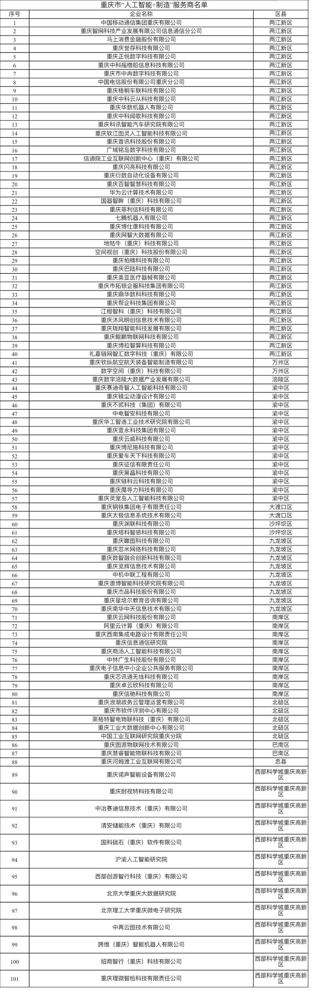 重庆公布“人工智能+制造”服务商名单 九龙坡有9家