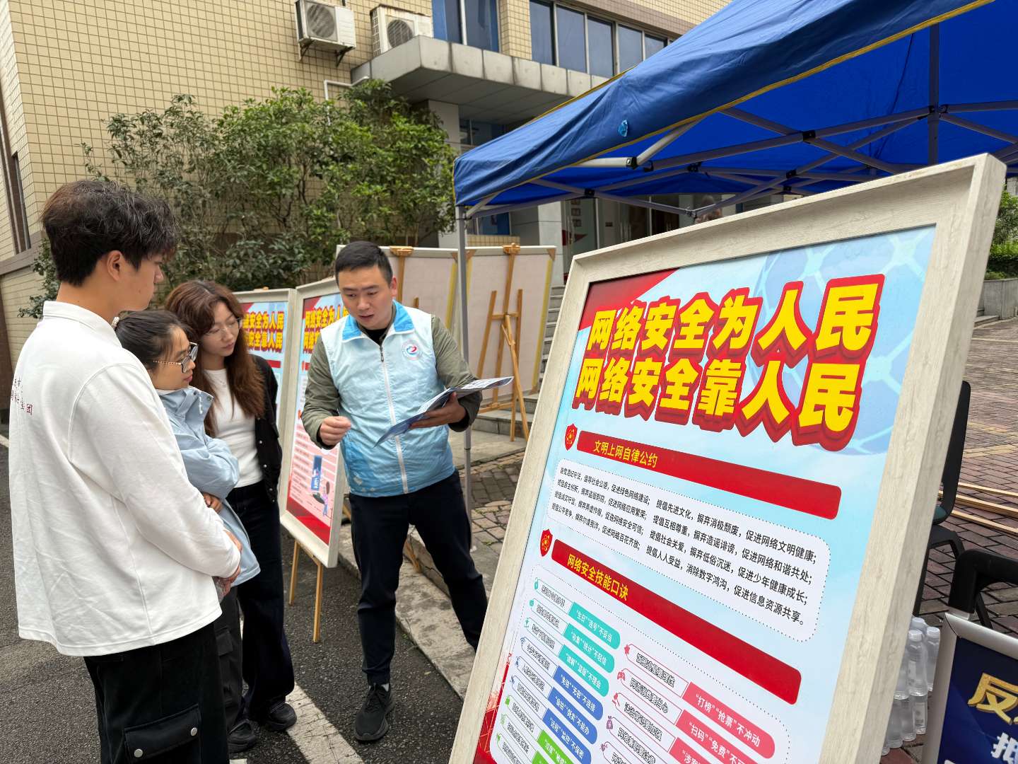 活动中,工作人员为大学生宣传网络安全相关知识。