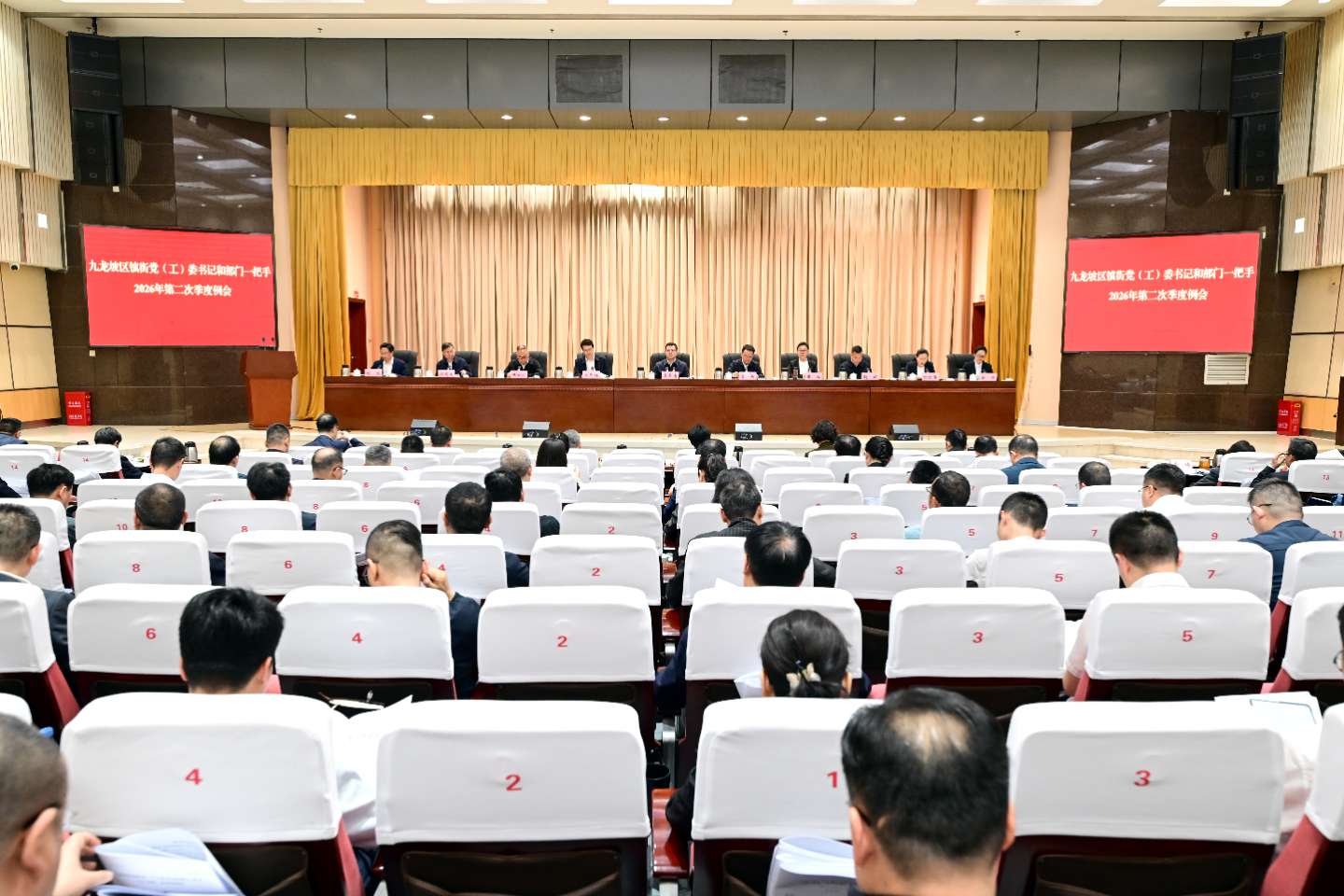 4月24日,九龙坡区镇街党(工)委书记和部门一把手2026年第二次季度例会召开。区委书记覃昌德出席会议并讲话。他强调,要全面贯彻党的二十届四中全会、中央经济工作会议和全国两会精神,深入落实市委经济工作会和全市“一把手”例会要求,紧扣走深走实全区经济社会发展“16912”总体思路,进一步树立不进则退、慢进也是退的紧迫感,以正确政绩观引领迭代拼经济促发展工作体系,持续提振“勇挑重担、走在前列”的精气神,全力实现“双过半”目标,充分展现大区担当、作出大区贡献。