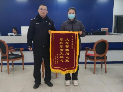 近日,九龙坡区公安分局中梁山派出所收到辖区居民王女士送来的一面印有“人民警察为人民、尽职尽责又尽心”的锦旗,对派出所民警助其找回丢失手机表示感谢。