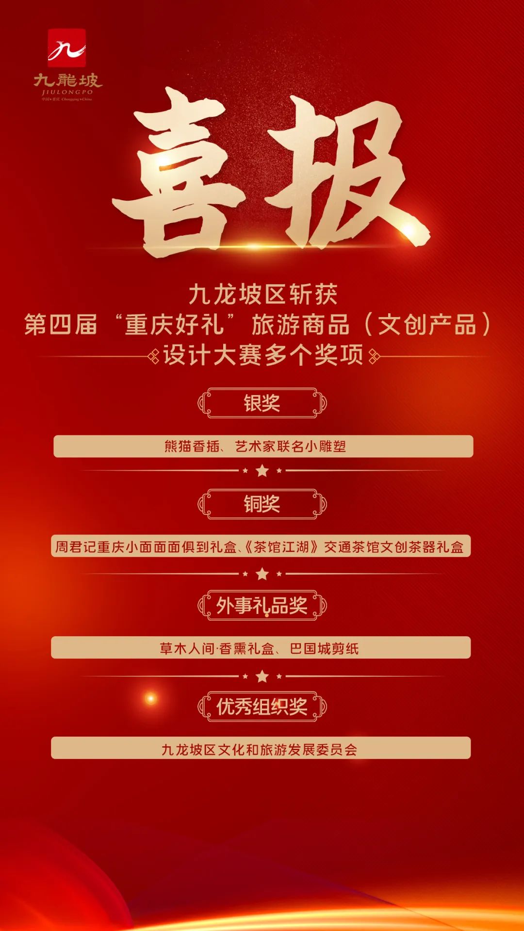 喜报丨九龙坡区斩获第四届“重庆好礼”旅游商品(文创产品)设计大赛多个奖项