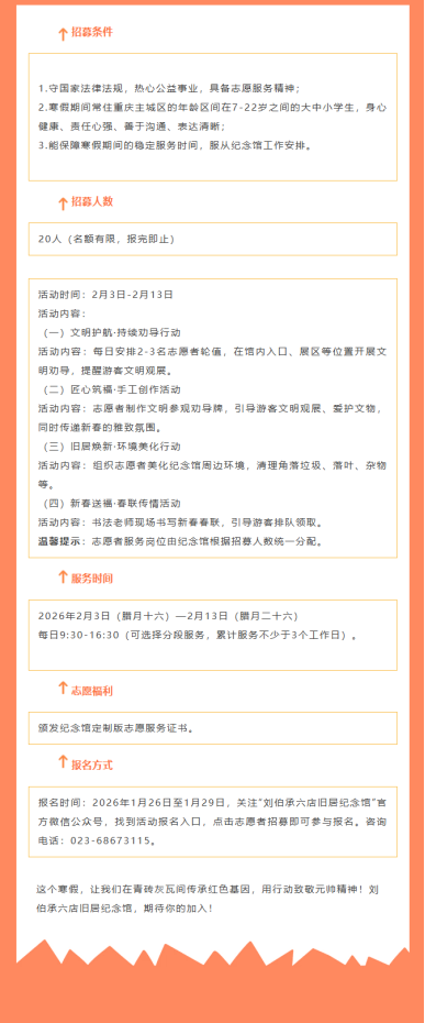 志愿者招募| 刘伯承六店旧居纪念馆2026年寒假星火志愿者招募启动!